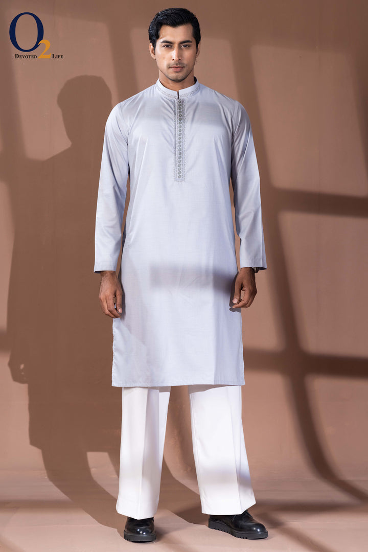 Zardozi Handwork Classic Fit Panjabi in Lava Ash