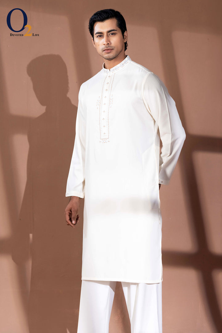 Product Description Product Type: Regular fit Panjabi Work Type: Zardozi Handwork Color Type: Cream, Fabric type: Pakistani Accourd The photos may present little differently compare to the actual product due to lighting. And viewer’s device & screen specifications. Only Dry Clean Available.